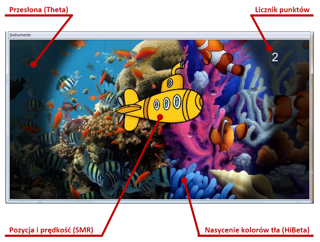 - Amplituda SMR/Beta steruje pozycją obiektu i prędkością przesuwania tła. Im wyżej obiekt i szybciej przesuwa się tło, tym lepiej.